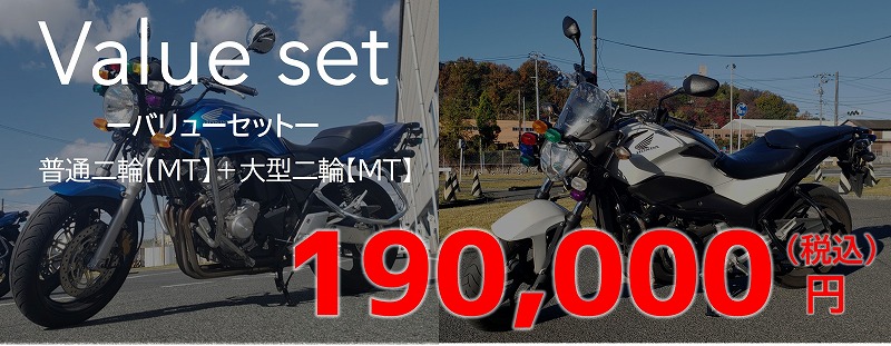 セットプランは、普通二輪+普通車、普通二輪+大型二輪、普通二輪+準中型、各種船舶免許+二輪免許をご用意しております。
