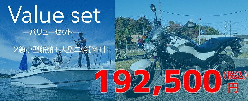 2級小型船舶操縦士と大型二輪免許のセットになります。