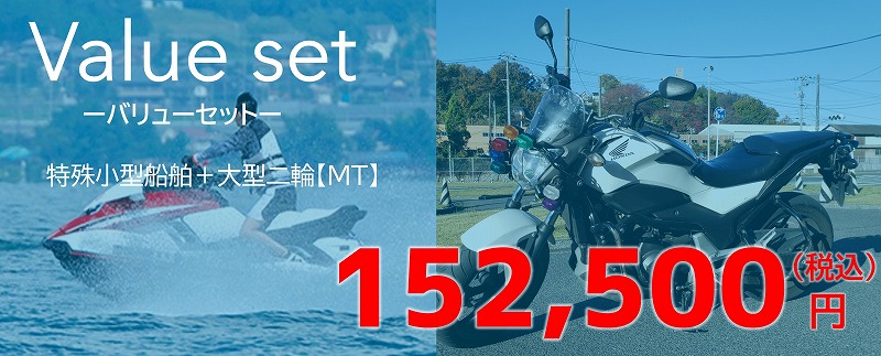 特殊小型船舶操縦士(ジェット)+大型二輪免許のセットになります。
