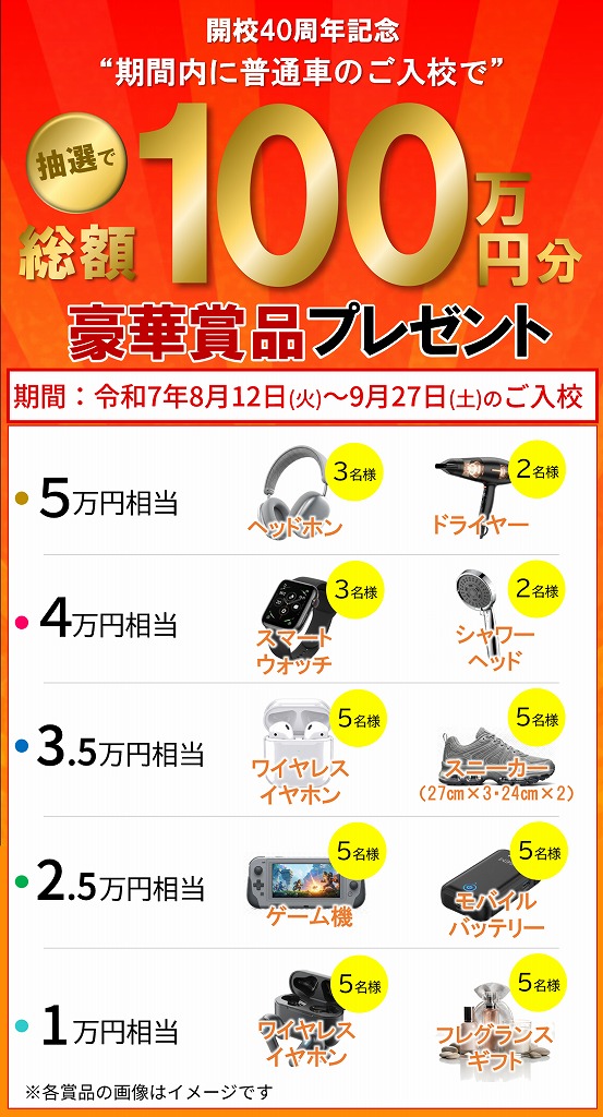 ・対象期間以前に、申込済み、若しくは、ご入校されている方は対象外となりますので、予めご了承ください。