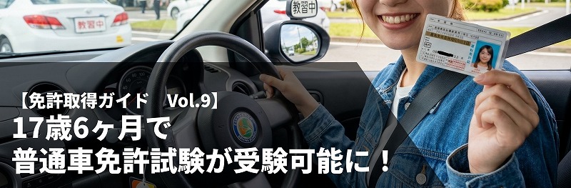 法改正によって、17歳6ヶ月で普通車免許に係る試験を受験することができるようになりました。但し、指定自動車学校の卒業検定に合格されて、本免許学科試験に合格されても免許証が交付されるのは、18歳になってからになります。