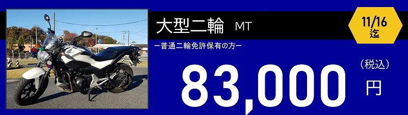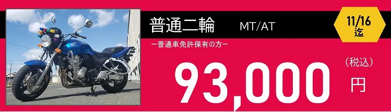 ※1 普通車の免許を取得済の方で、普通二輪MTを取得される場合です。