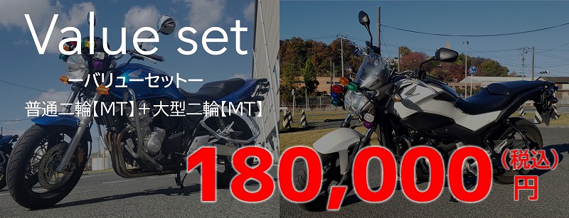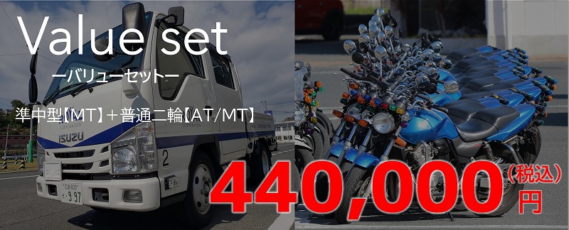 セットプランは、普通二輪+普通車、普通二輪+大型二輪、普通二輪+準中型、各種船舶免許+二輪免許をご用意しております。