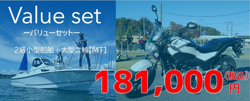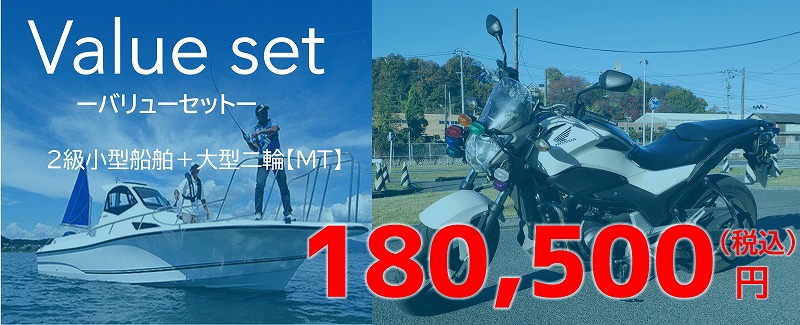 2級小型船舶操縦士と大型二輪免許のセットになります。