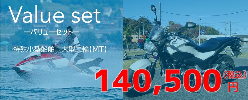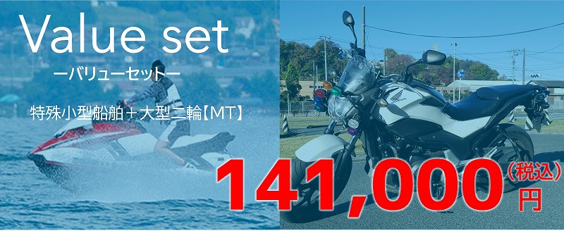 特殊小型船舶操縦士(ジェット)+大型二輪免許のセットになります。