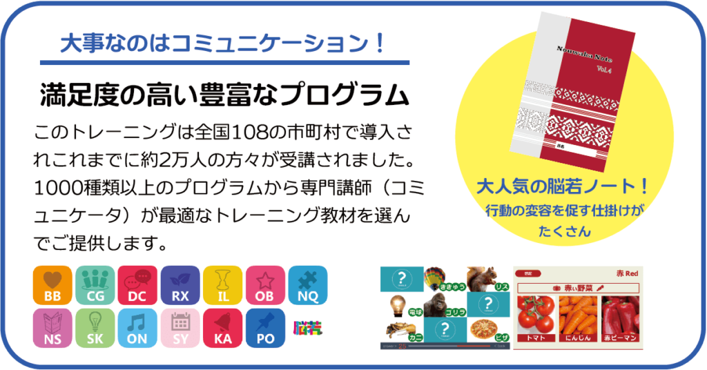 使用する物は、遅延記憶・短期記憶トレーニング、聴覚視覚トレーニング、ストレッチ、脳活性化運動など科学的根拠に基づいて開発されています。