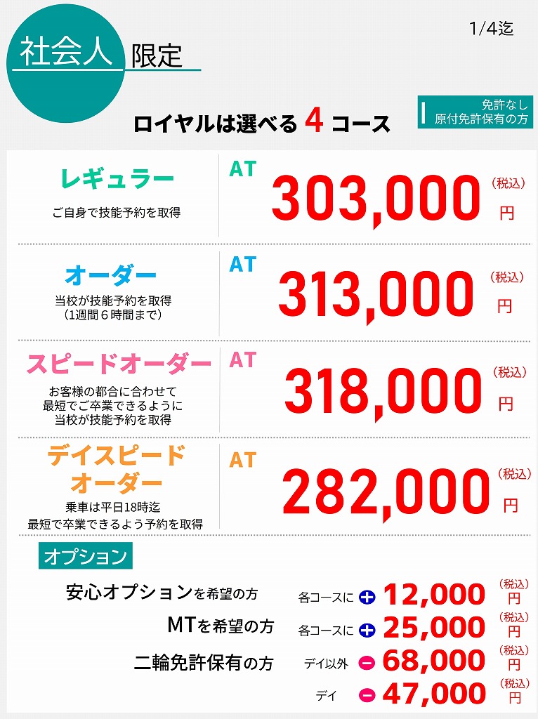 ①補修料金=1時限当たり 税込6,000円 (安心プランでは10H迄不要です)