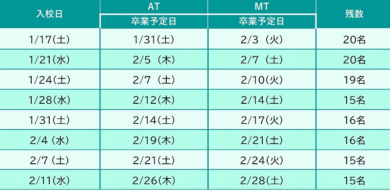 MT 技能教習34時間以上 学科教習:26時間