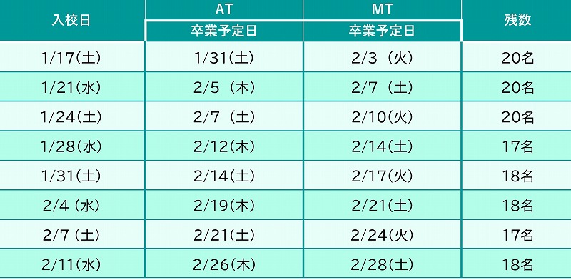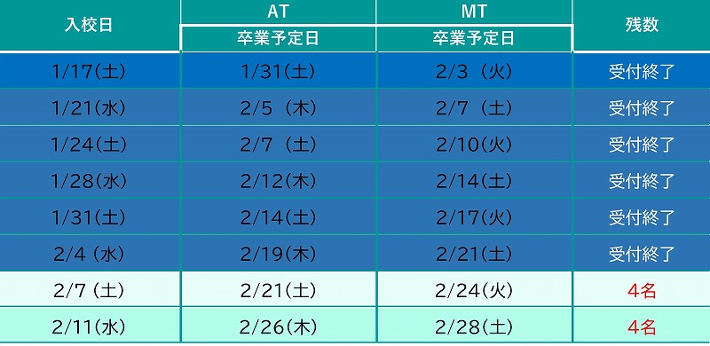 ③豪雨、積雪などの天災地変により、卒業予定日が伸びる場合がございますので、予めご了承下さい。